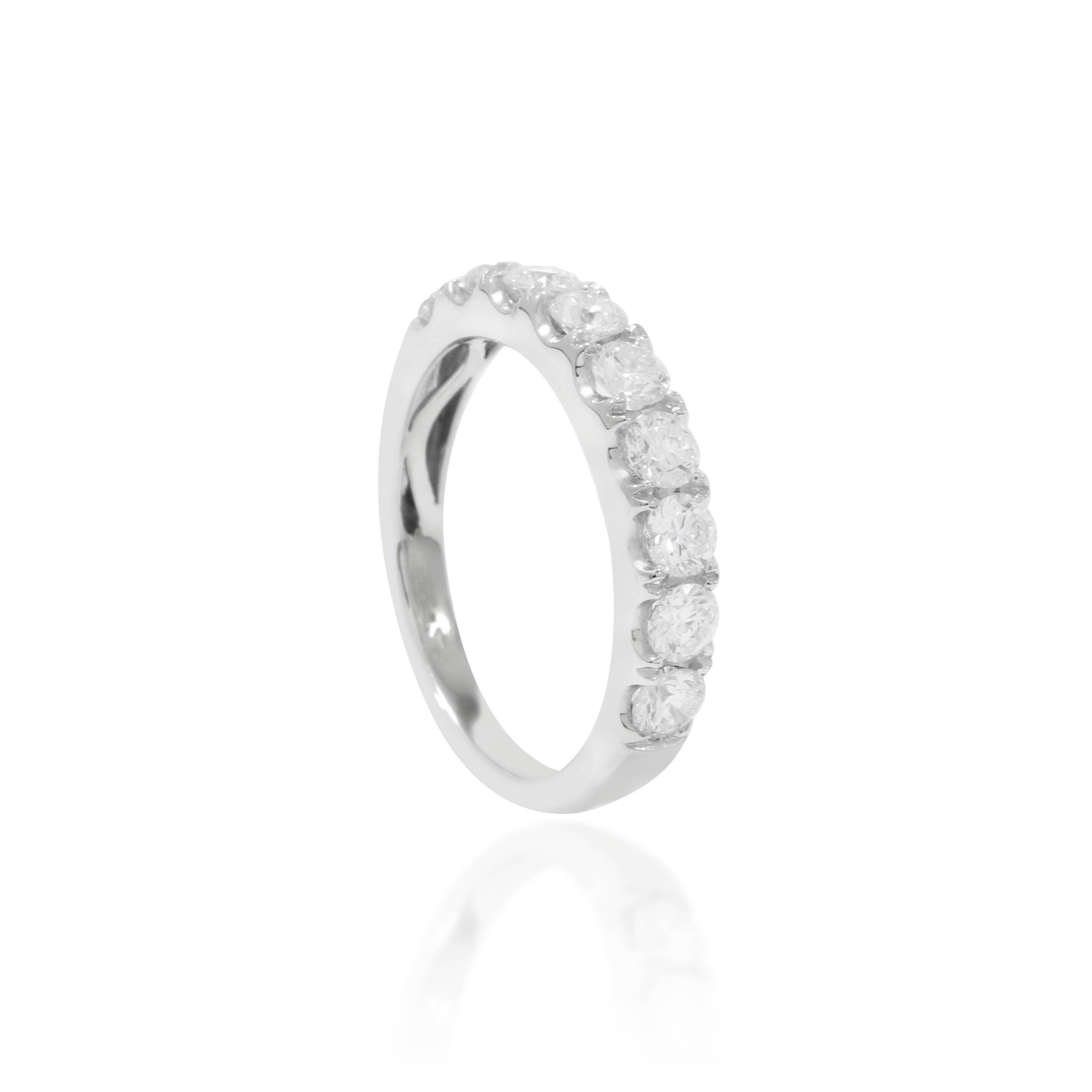 Half alliance ring in 18K white gold with 9 diamonds set in claws. The total weight of the diamonds is 1.08cts.
