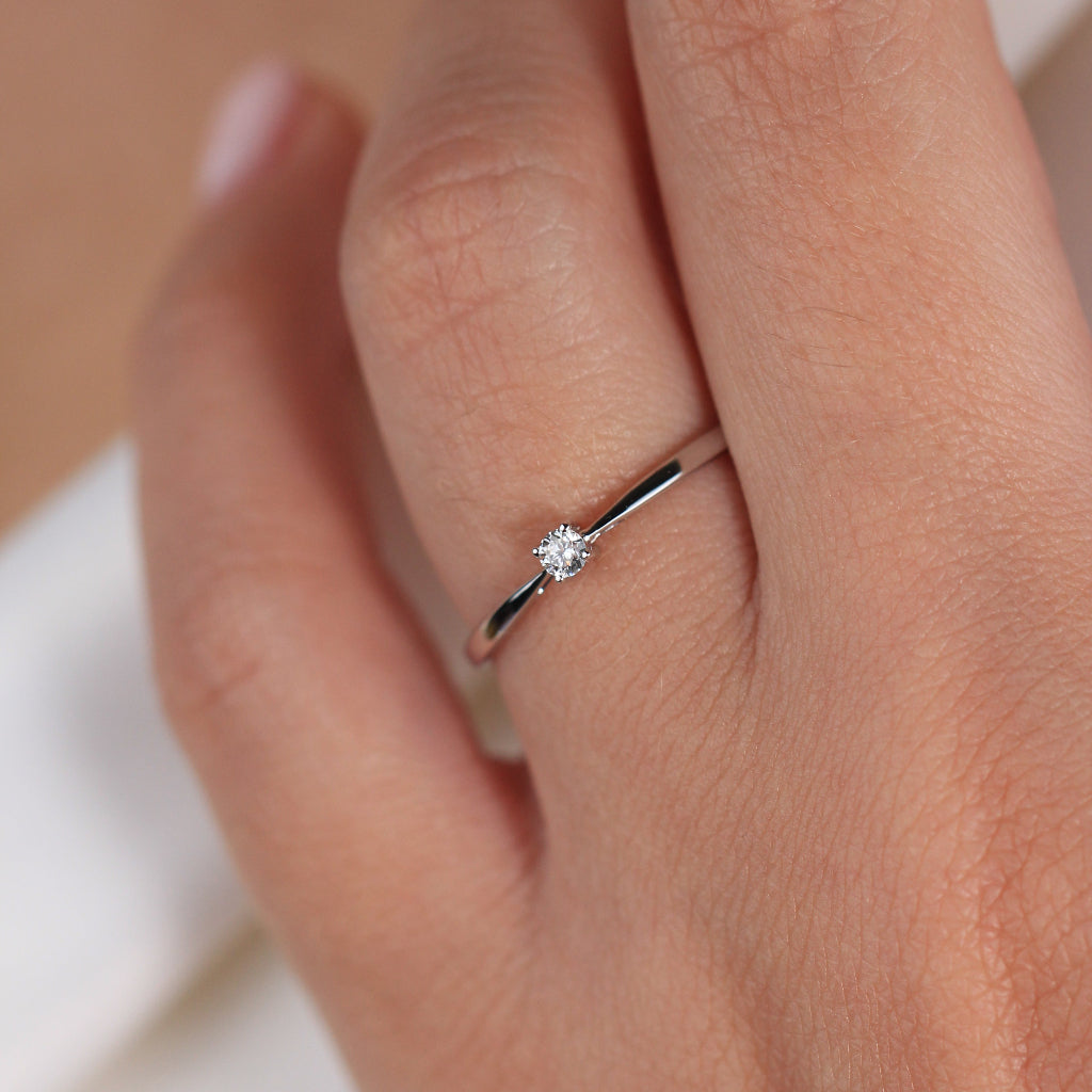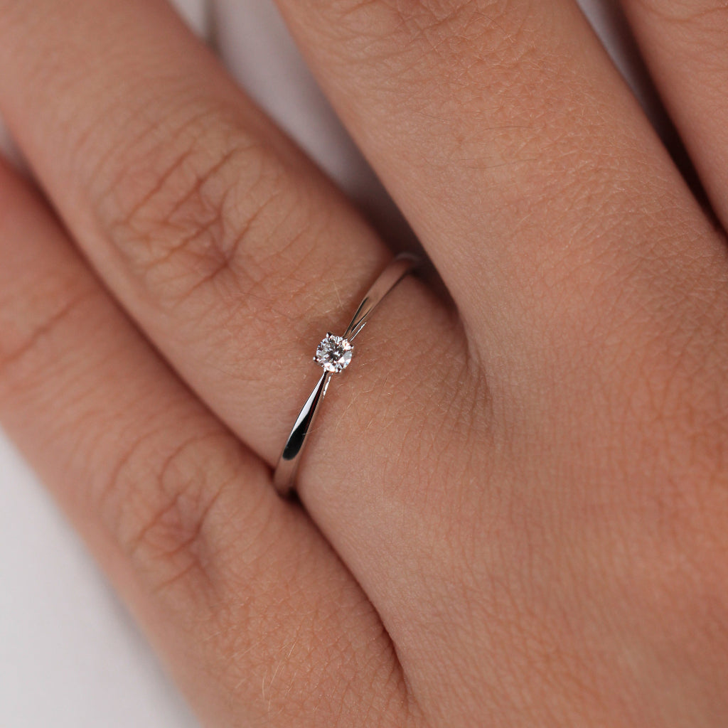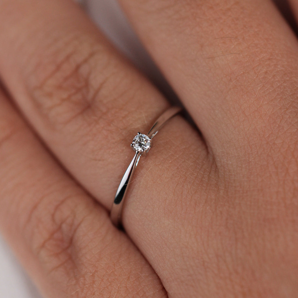 Ring made of 18 carat white gold with 1 brilliant cut diamond of 0.22 cts. set in four claws. The width of the main motif is 4.2mm.