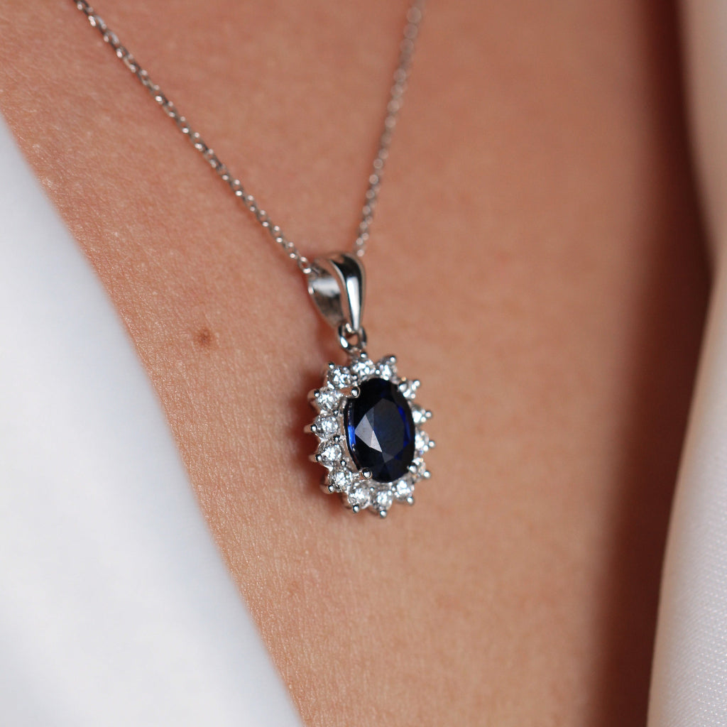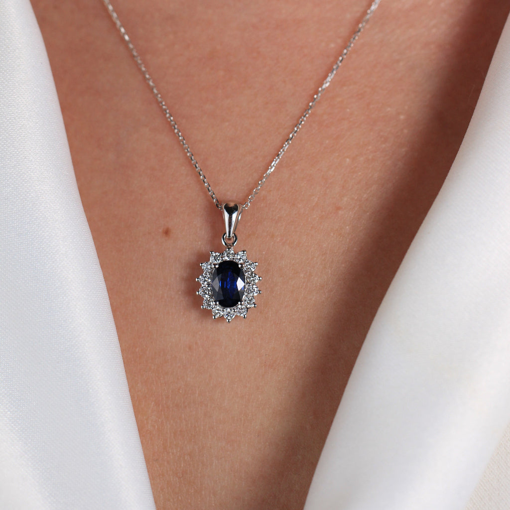Pendant made of 18K white gold in the shape of a heart with sapphires. Motif 21.7mm.