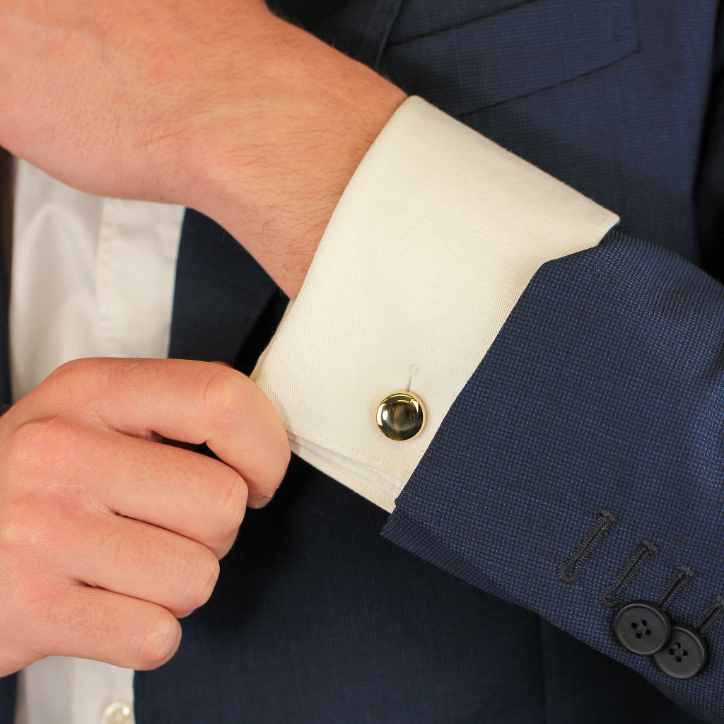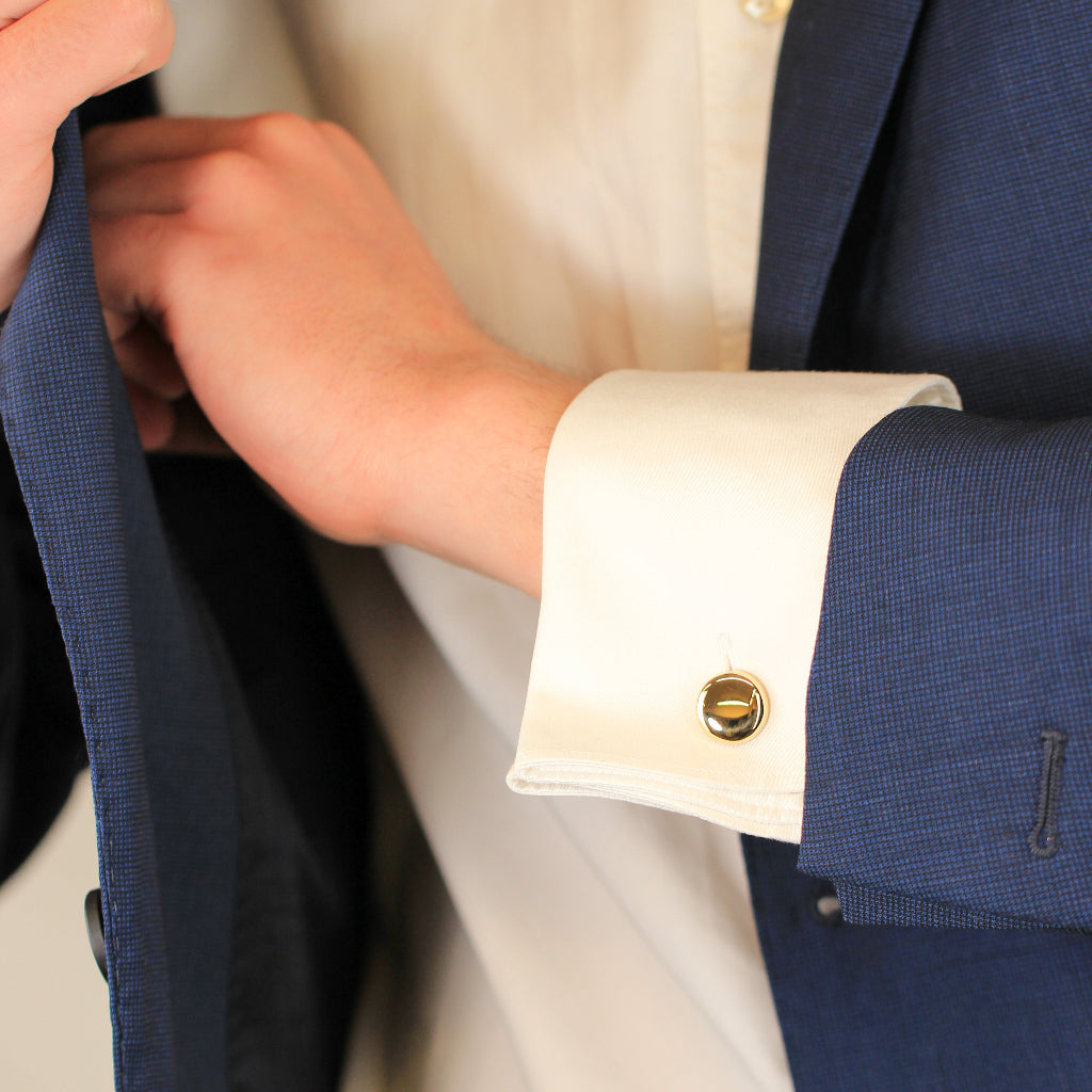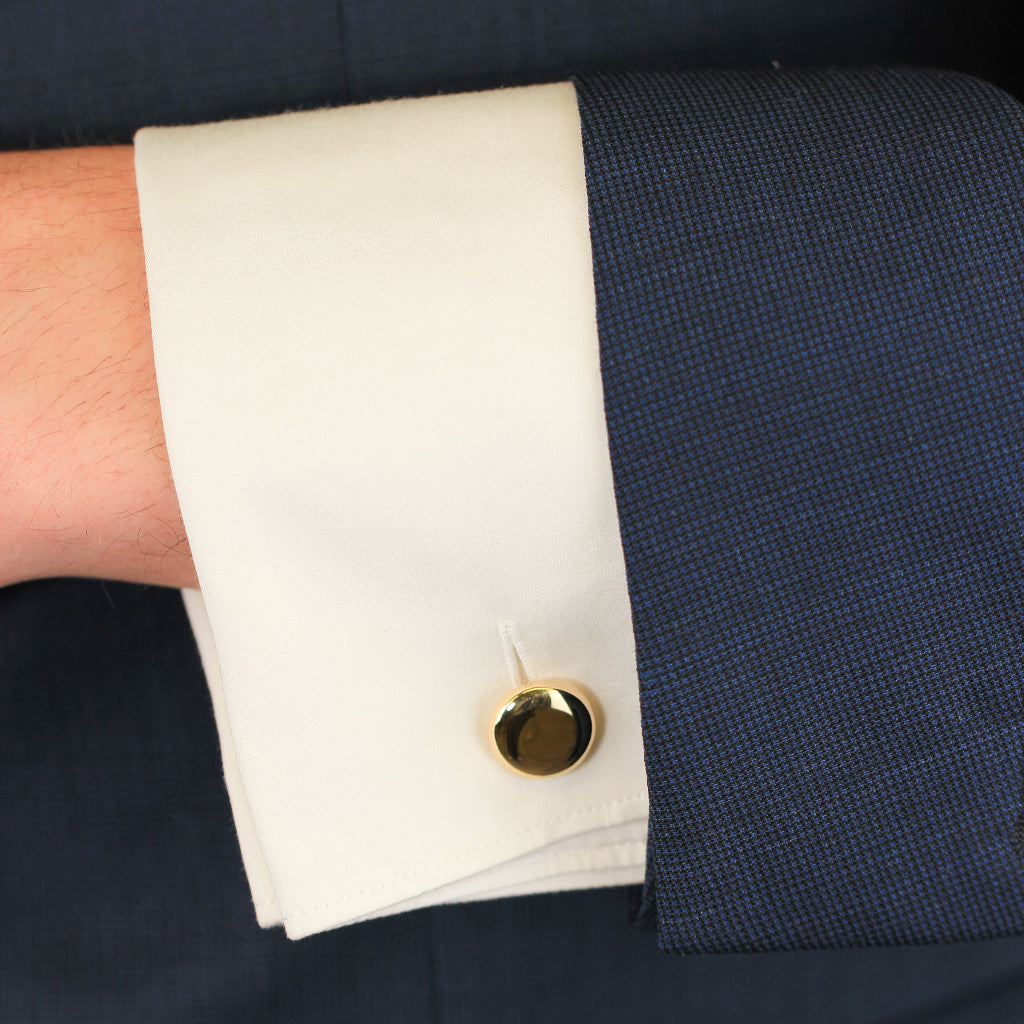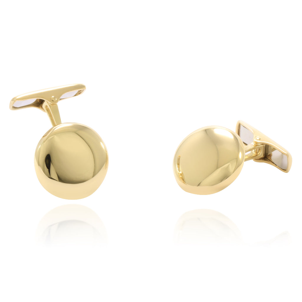 Circular cufflinks made of 18-karat yellow gold. The cufflinks measure 1,43 cm.