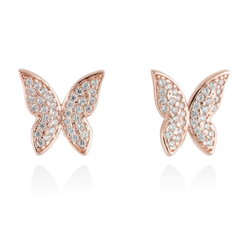 Pendientes de plata de primera ley (925) chapada en oro rosa de 18 quilates con circonita incolora. Tienen un tamaño de 1,2 cm.