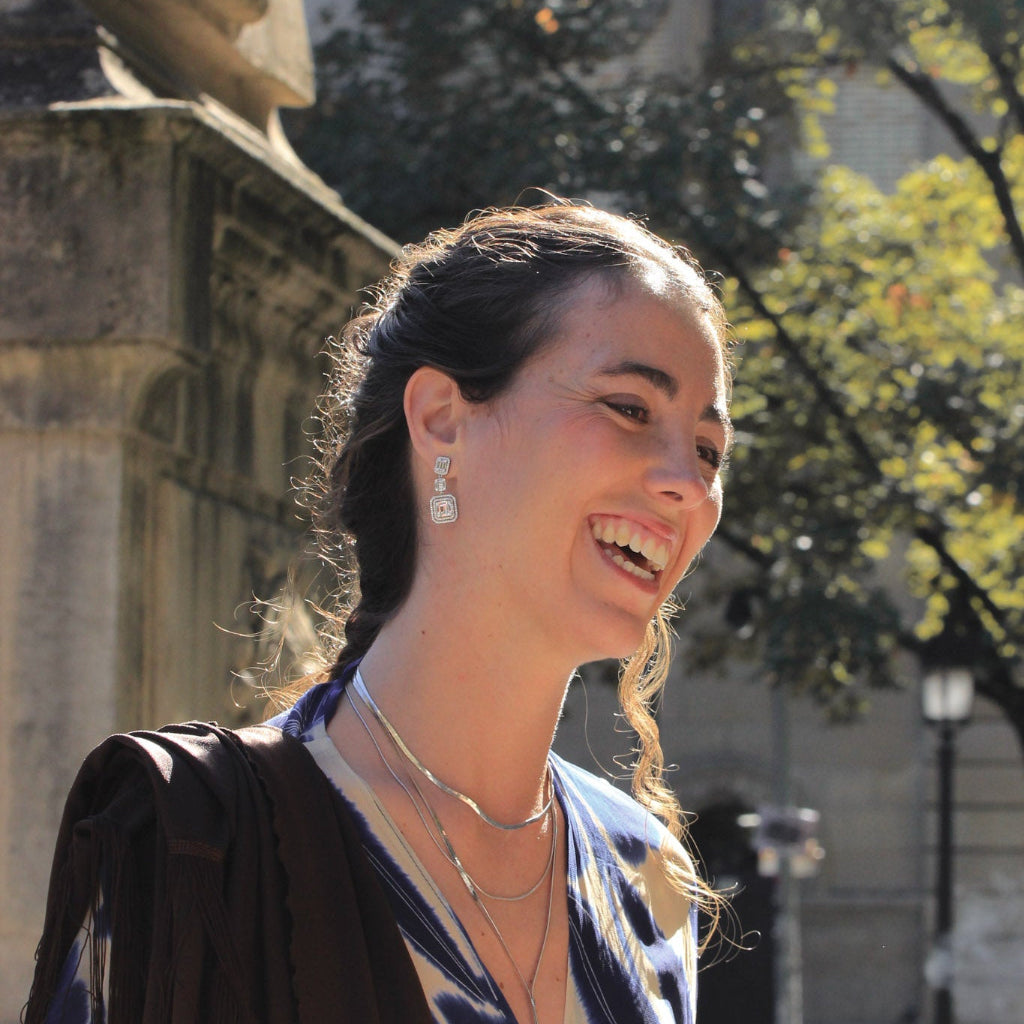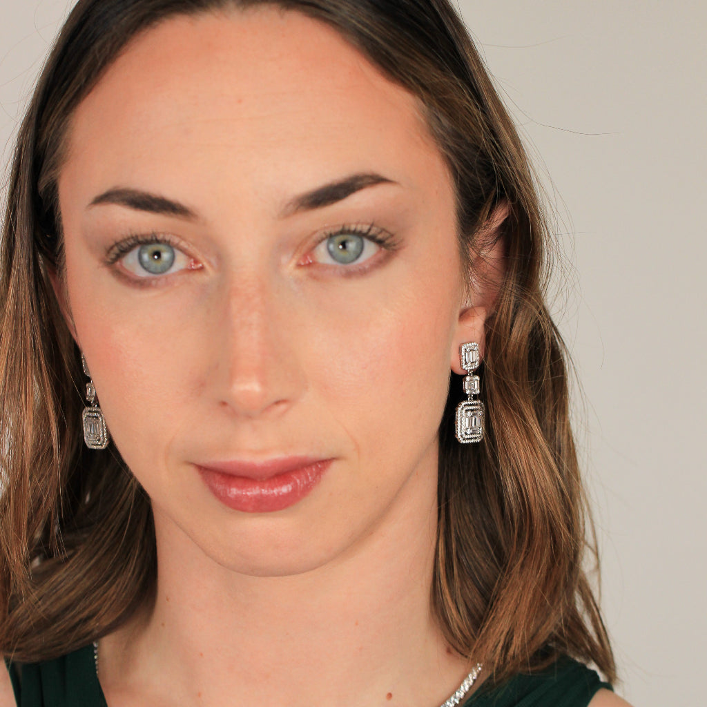 Earrings made of sterling silver with a drop of colorless zircons. The earrings measure 3.7cm long.