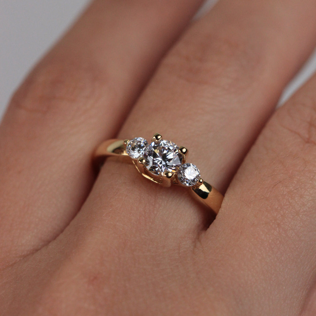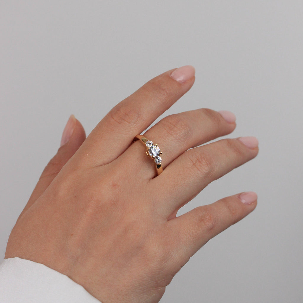 Ring made of 18-karat white gold with a central blue zircon and three colorless zircons on each side. The width of the aquamarine is 6mm.