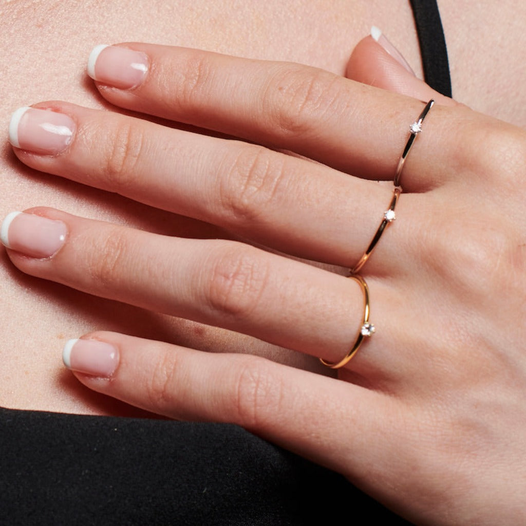 Sortija solitario en oro rosa de 18 quilates, 0,03cts de diamante natural talla brillante engarzado en seis garras.