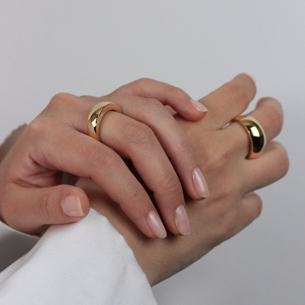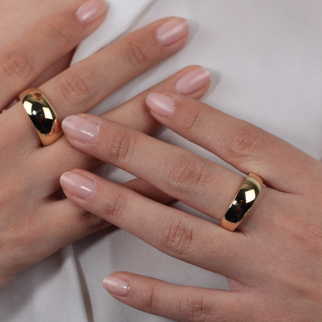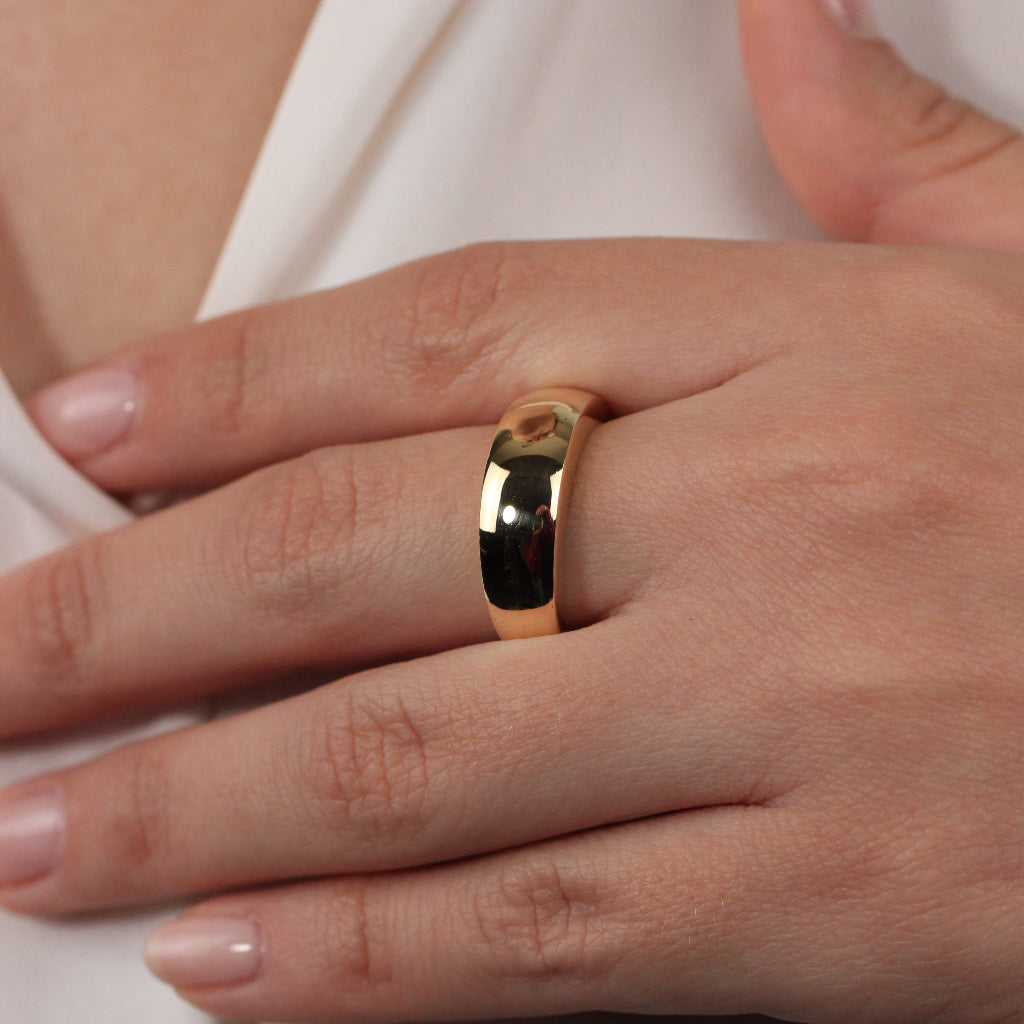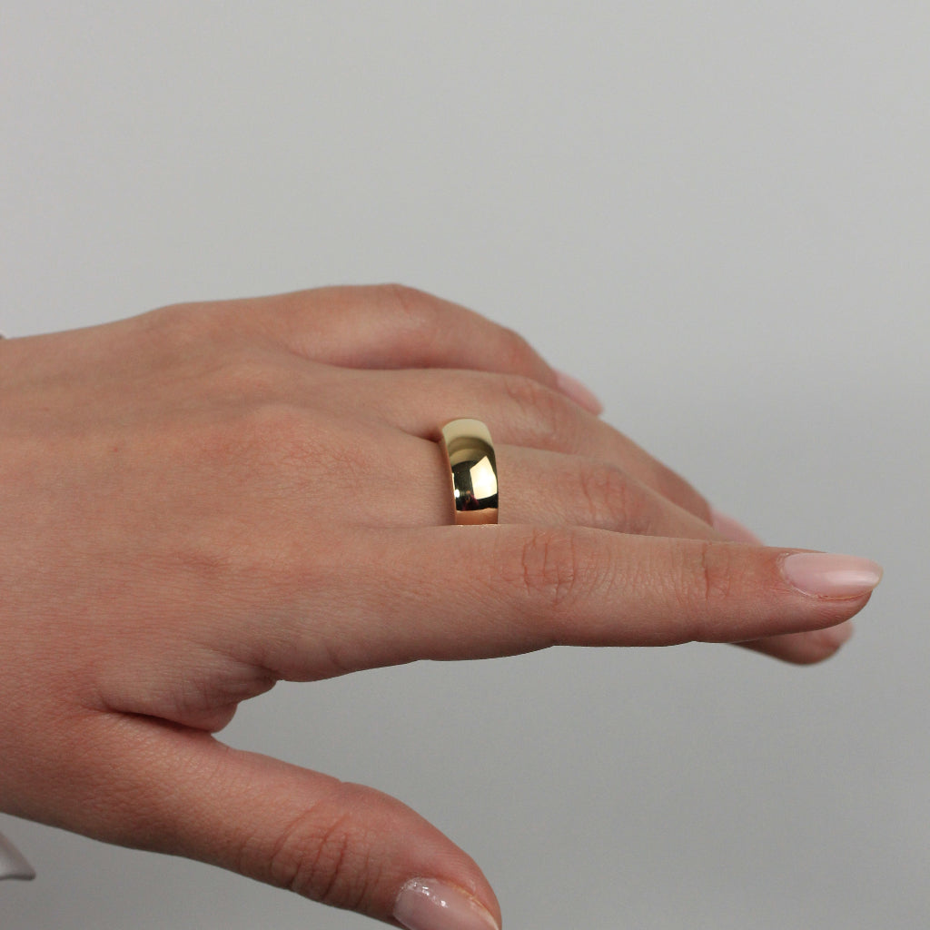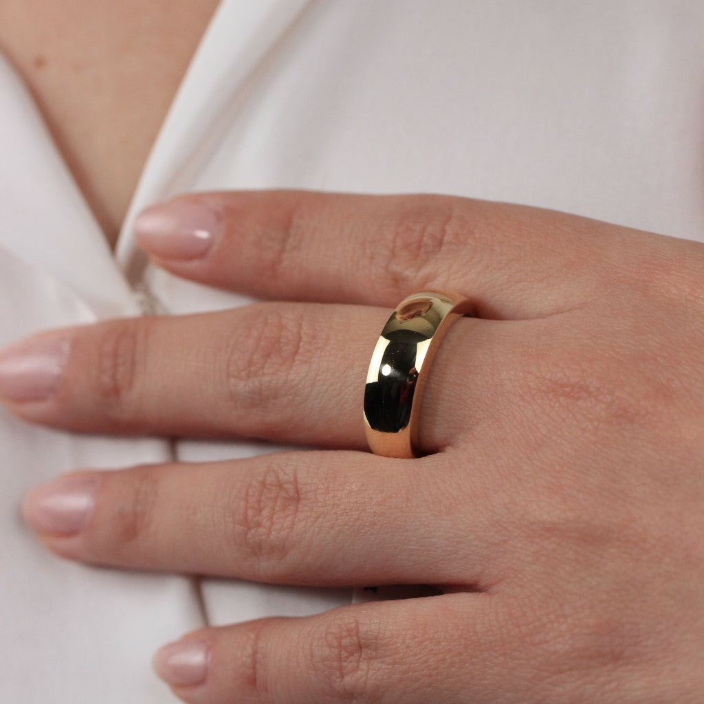 Sortija realizada en oro amarillo de 18 quilates. El ancho del anillo es de 6mm.