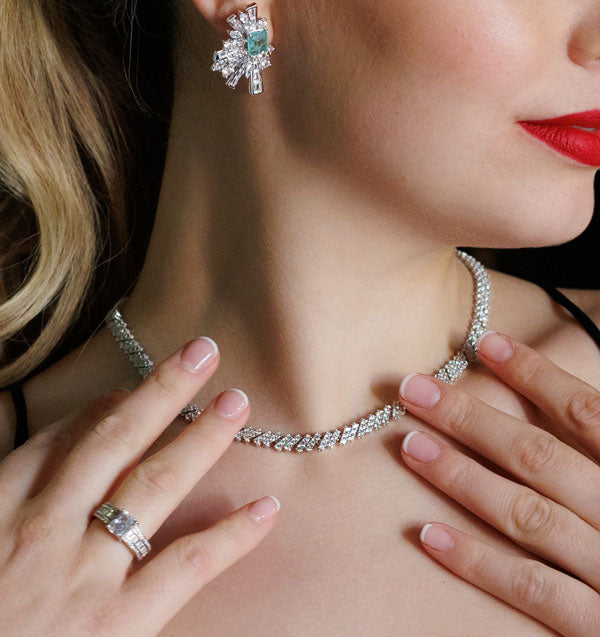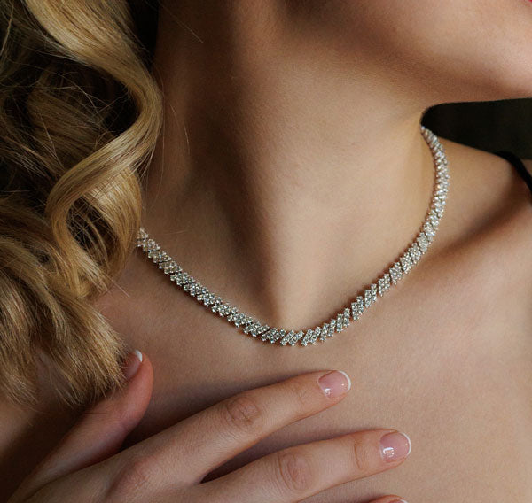 Gargantilla realizada en plata de primera ley con circonitas incolora. La gargantilla mide 40cm de largo.