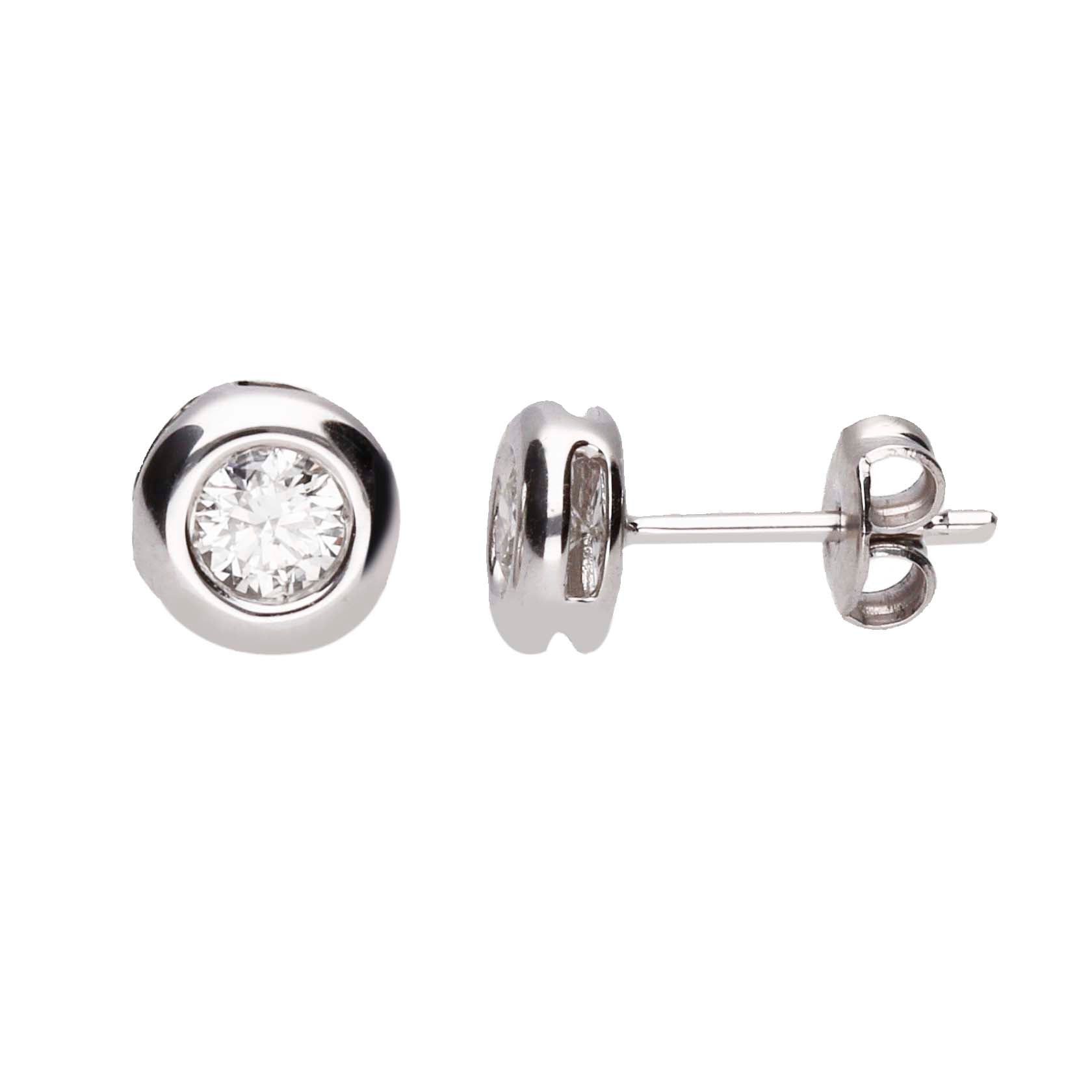 Pendientes en oro blanco de 18 quilates con un solitario de diamante natural de 0,10cts engastado en chatón.