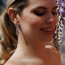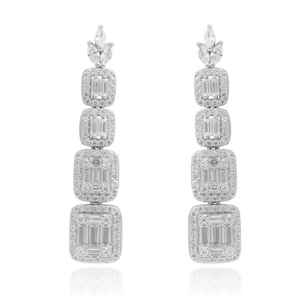 Pendientes realizados en plata de primera ley con una caída de circonitas incoloras talla baguette. Los pendientes miden 4,3cm de largo.